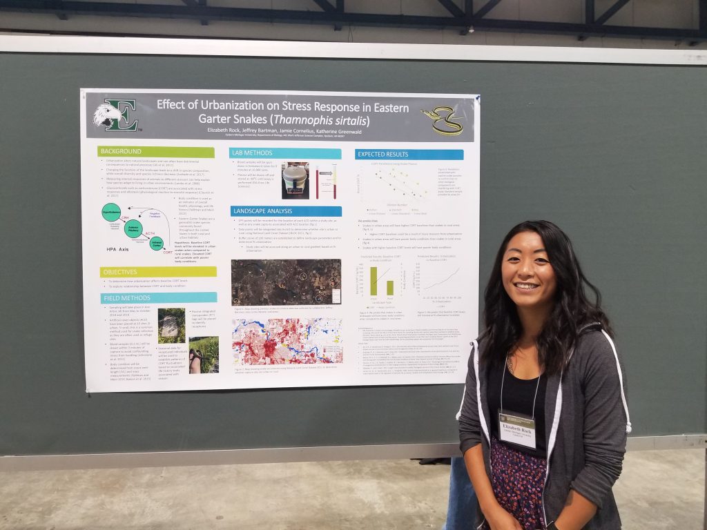 Jeff Bartman (M.S. December 2019) worked on demography and conservation genetics of garter and brown snakes along an urban-rural gradient. He came to EMU from Grand Valley State University, where he worked with Dr. Jen Moore and published his undergraduate research on survey methods for massasauga rattlesnakes. Jeff is currently writing his Master’s work up for publication.