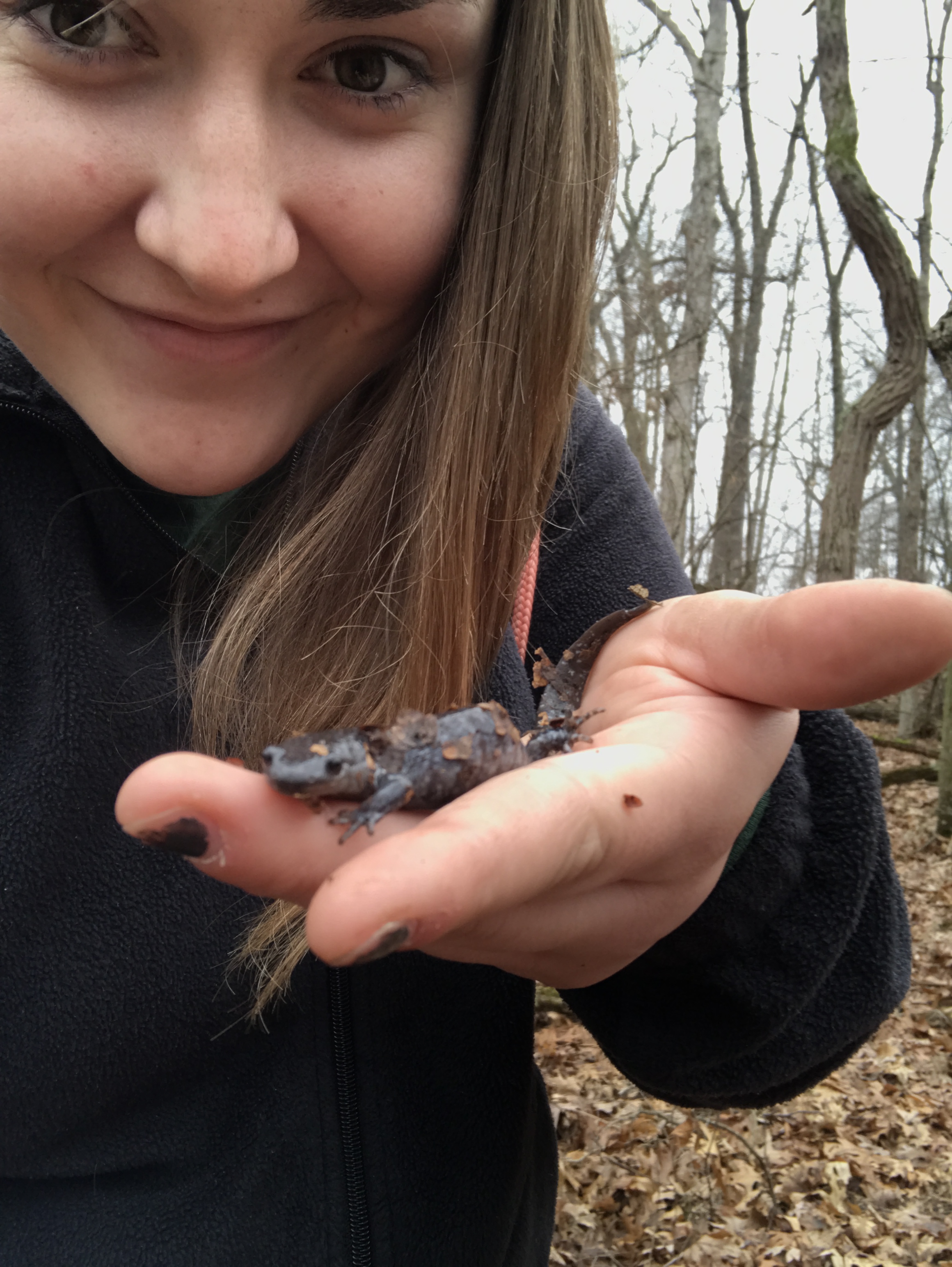 Michelle Souza (M.S. December 2021) was an undergraduate at EMU who stayed on as a Master’s student. Her work focused on a very isolated population of marbled salamanders on Kelleys Island, in Lake Erie. I obtained genetic samples from this population early in graduate school, and Michelle resampled it and conducted mark-recapture analysis to document changes in population size.