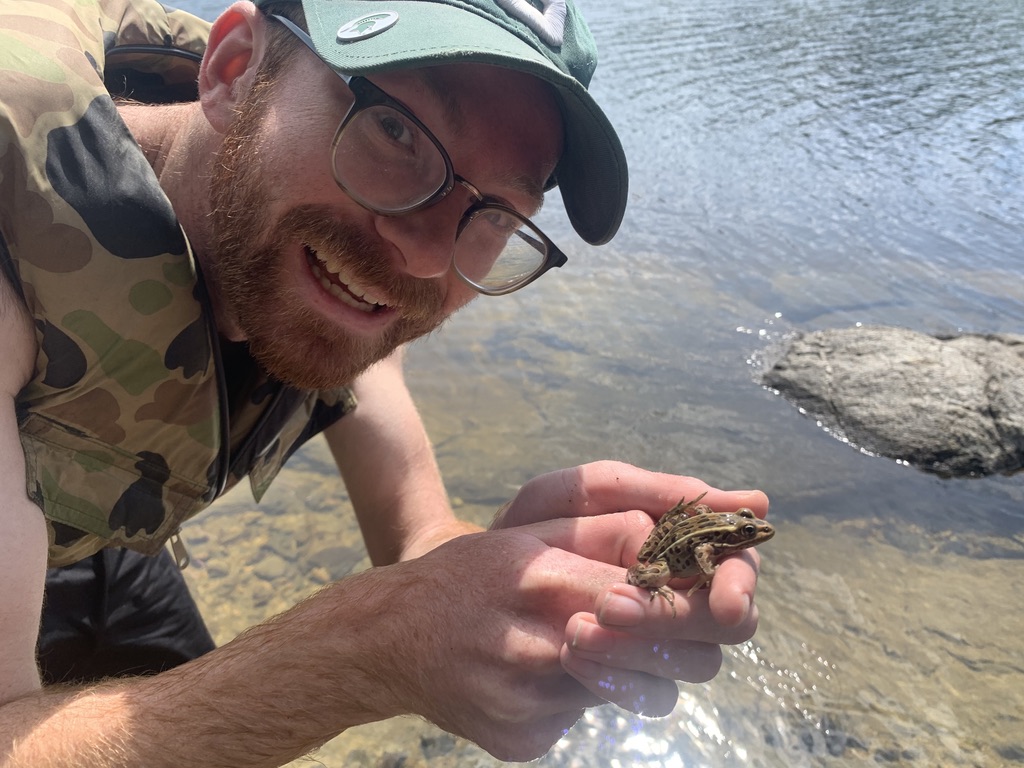 Sean Callahan (M.S. April 2023) came to the lab from the University of Michigan, having worked with Dr. Alison Davis Rabosky in the UMMZ Research Museum Collection. He will be working with museum samples to determine whether chytridiomycosis may have contributed to widespread extirpation of leopard frogs on the east coast.